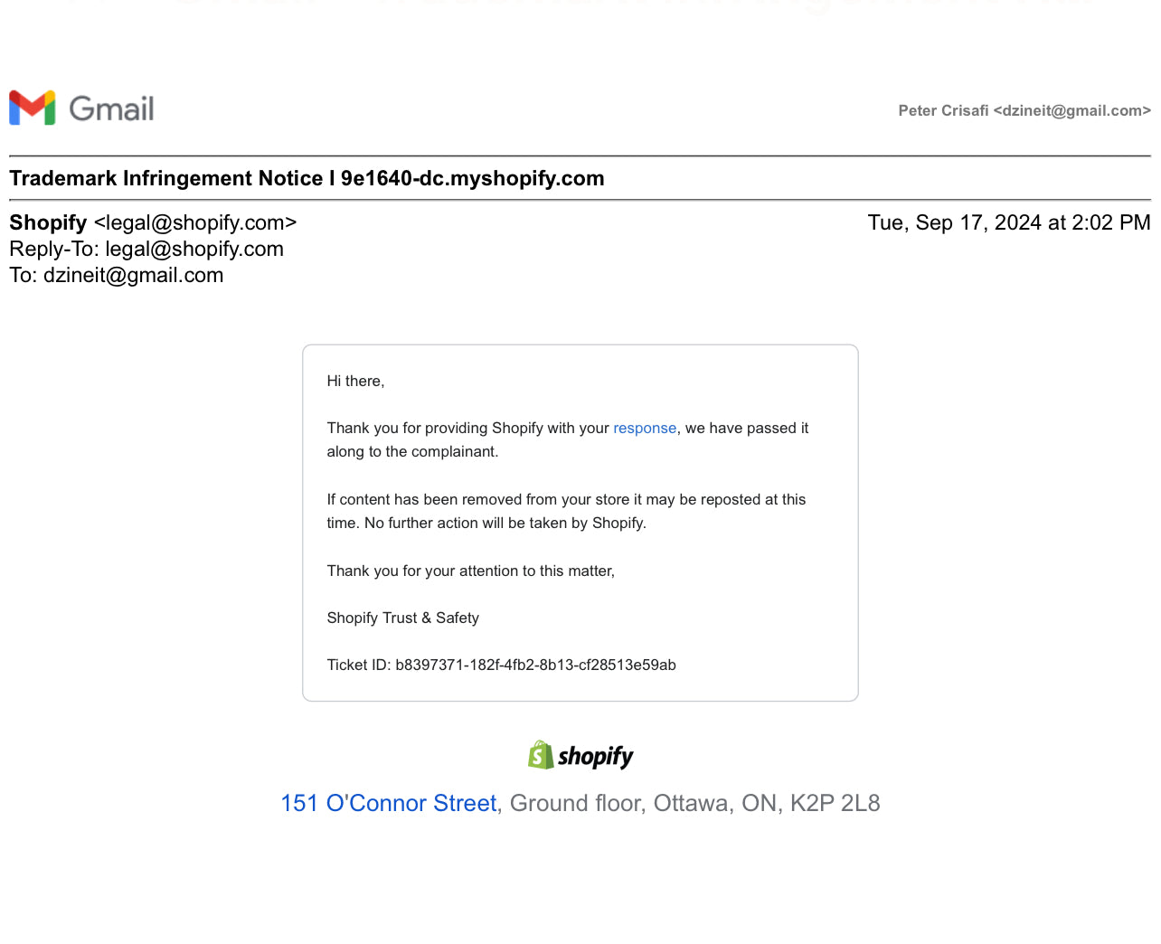 08/29/24 - Trademark Infringement Notice I 9e1640-dc.myshopify.com